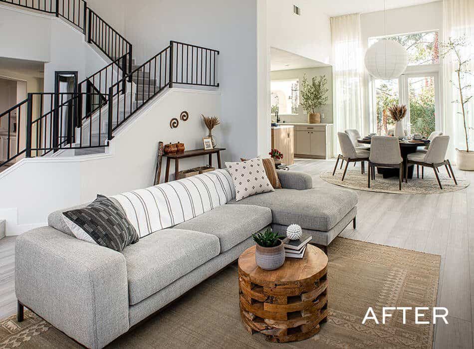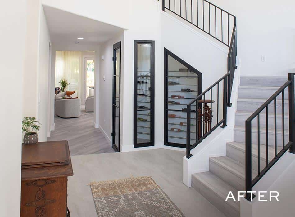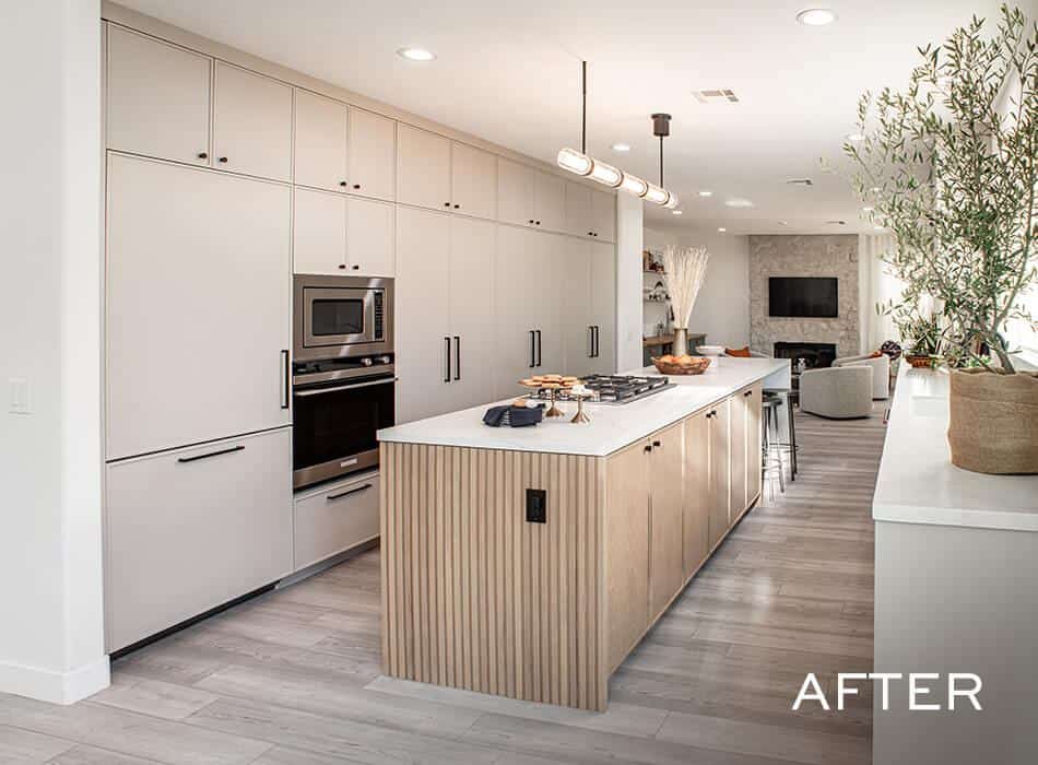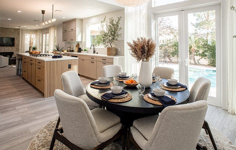 Despite being in a desert, Las Vegas is all about indoor-outdoor living, with plenty of sun and swimming pools. Carlee and J.J. needed better access to theirs, so we replaced the dining room window with french doors, so they can finish breakfast and jump right in. The removed wall between the kitchen and dining room gives them extra space and much better sightlines all the way to the …