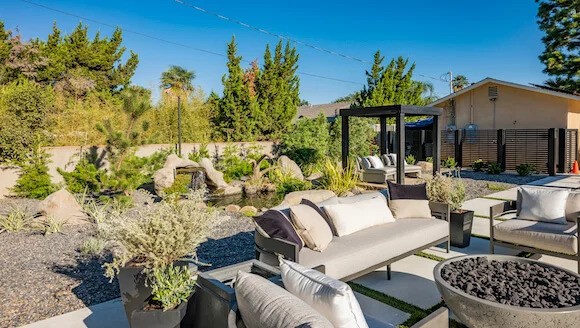 Frank’s koi pond was a great feature we wanted to highlight. We added additional outdoor seating nearby and a firepit so that the family can gather late at night and watch both the stars and the swimmers.