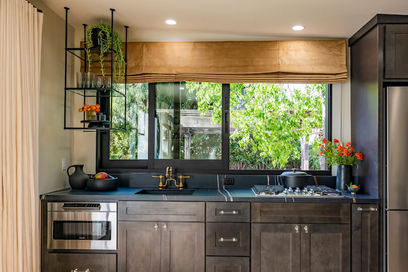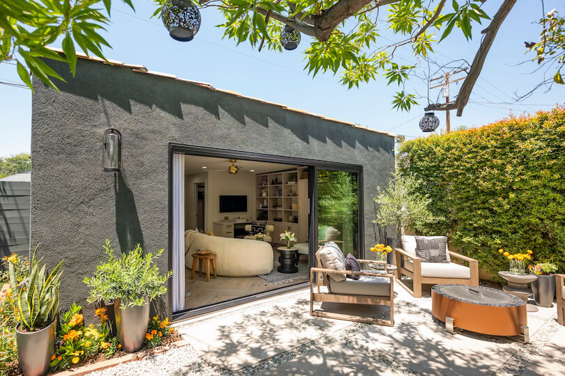 Cheryl worked with us to transform Sarita’s underused detached garage into a gorgeous multi-function personal retreat and guest suite, complete with a kitchenette, bathroom, office, and patio.