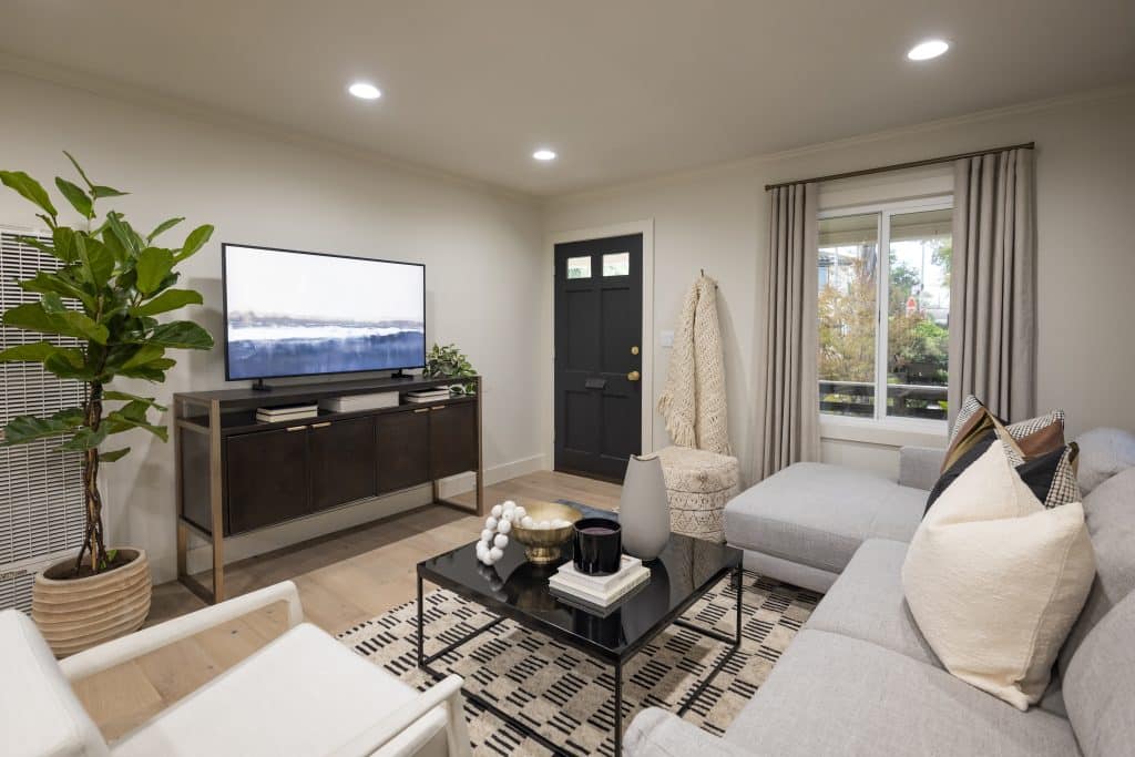 With three generations of Lucia’s family sharing the house, it was important that we open things up so that everyone could have a place to relax together. We added in cozy yet durable furniture so now the living room can host as many gatherings as Lucia desires.