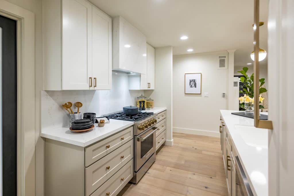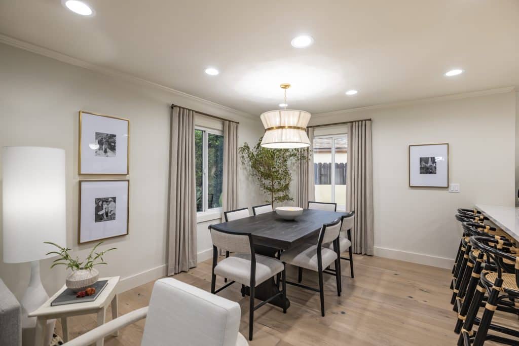 Heidi wanted Lucia’s home to be as bright and beautiful as possible, so we replaced the original dark hardwood with light European oak flooring that will bring out the best of Lucia’s new chic dining table.