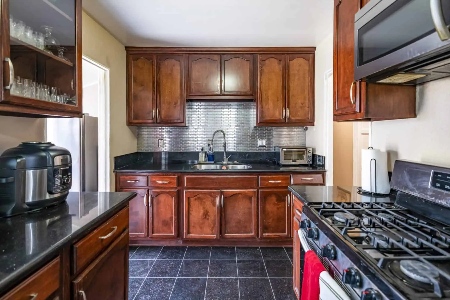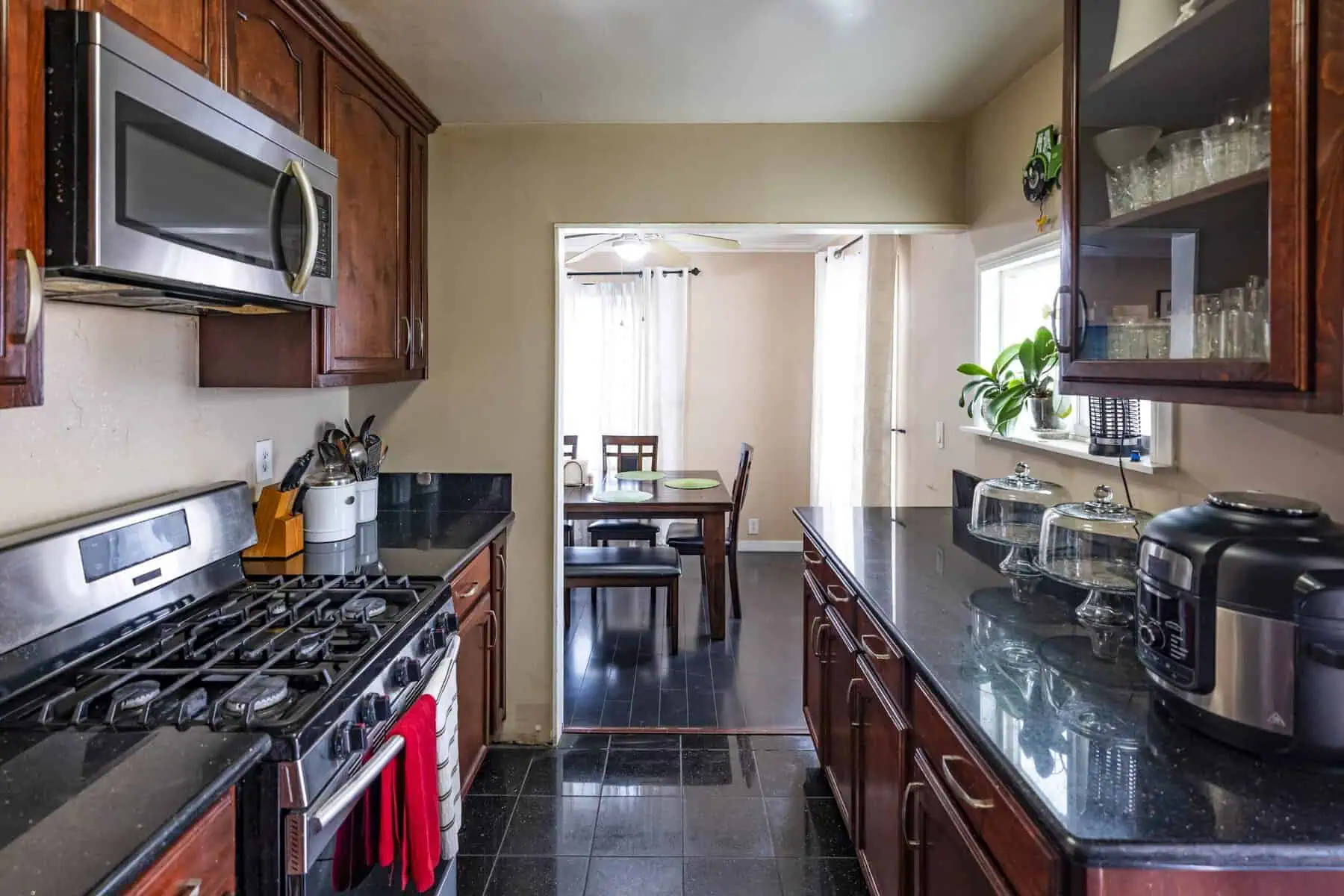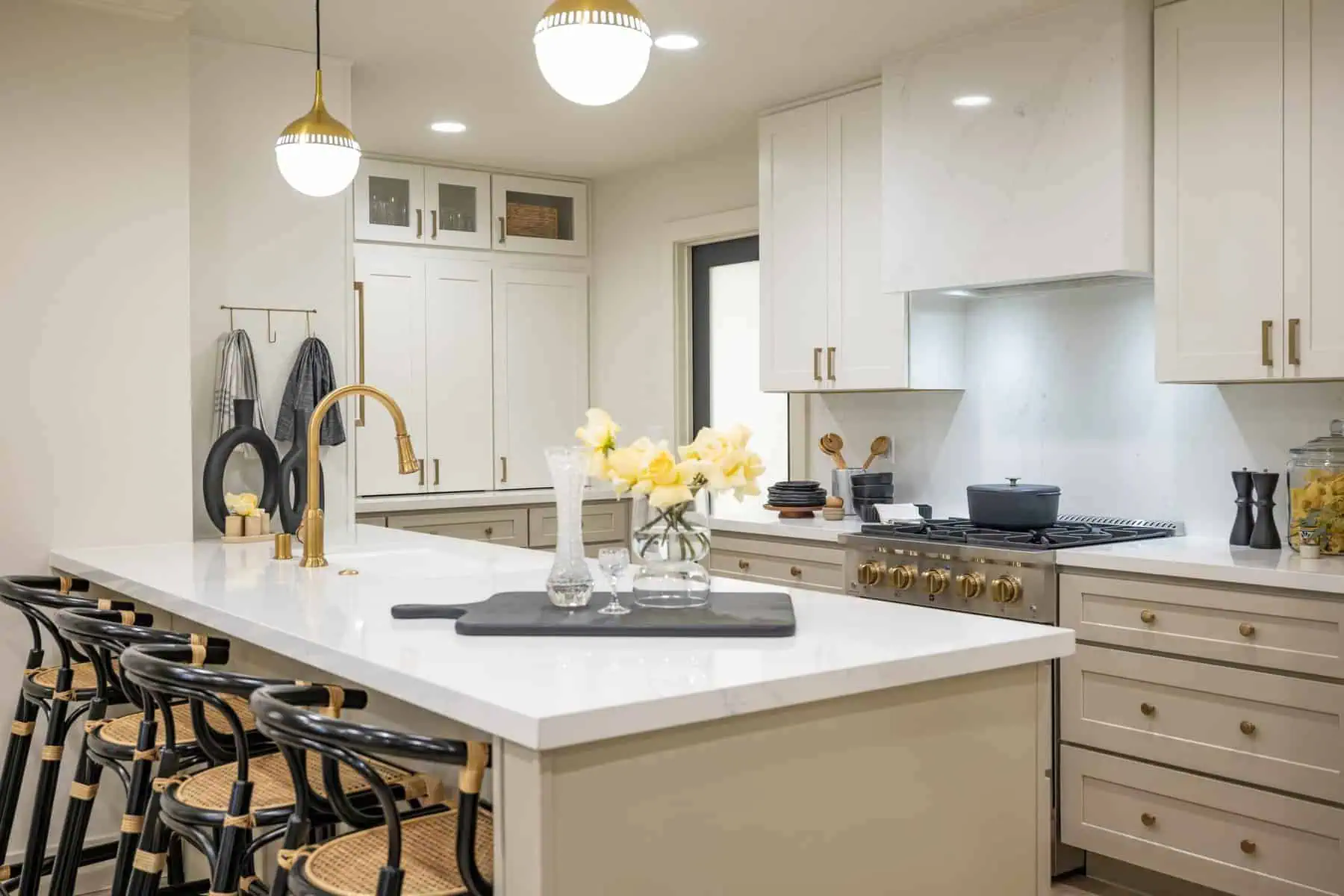 The rockstar of this renovation is definitely the kitchen. Before, the refrigerator was sectioned off in a little lean-to attached to the house. We opened up the exterior wall to rebuild that addition and extend the kitchen’s appliances and cabinets all the way around the room.