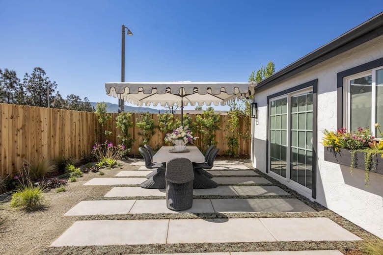 Taraji decided it would be great to give Jahel and her daughter, Winter, a place to eat outside. By using decomposed gravel to divide up the backyard into zones, we were able to set aside a chic and modern dining area that will make entertaining guests a breeze.