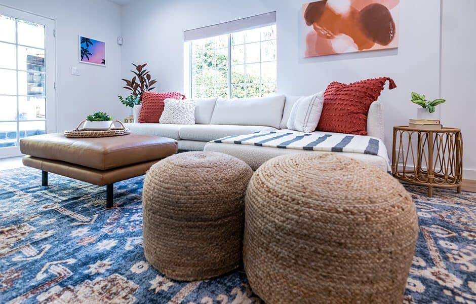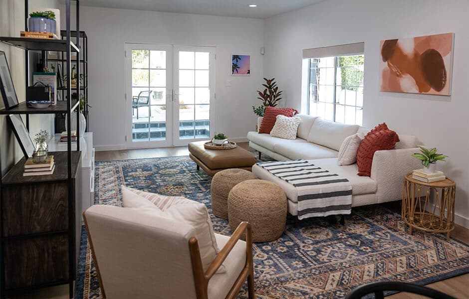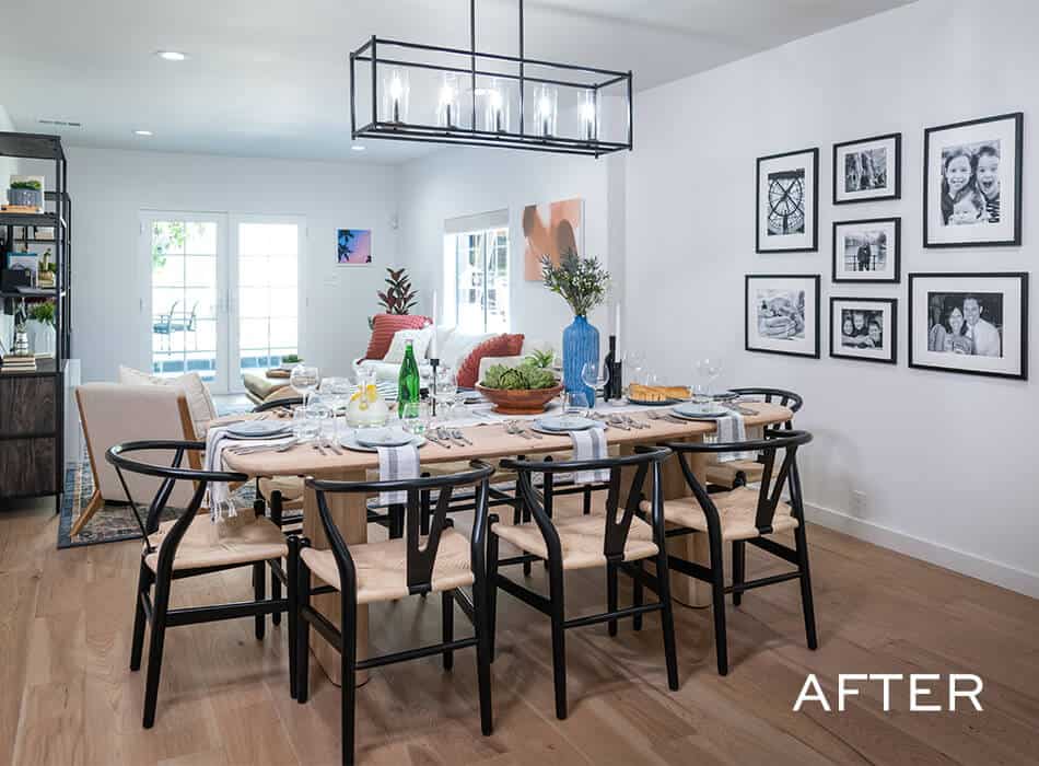 Part of creating a more spacious living area included making sure there was easy access to the backyard—especially after we installed a long-awaited basketball hoop for the kids. Creating smooth indoor/outdoor transitions has become more important than ever, so we wanted the family to feel the same openness of their new design even when they were standing outside it.