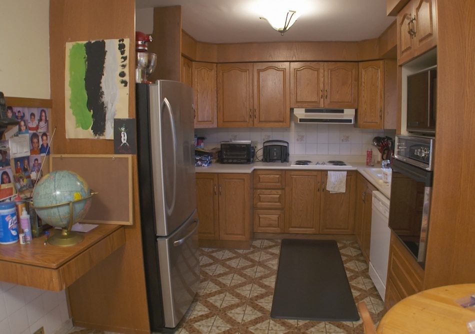 Dana and Terry weren’t looking for a new house because theirs was a lost cause—they just needed more space for their growing family. (Current head count: six.) Their place had tons of square footage to work with; all we had to do was reconfigure it. So we said goodbye to the cave-like kitchen, in part by moving the door to another wall and relocating the windows. This was an admittedly expensive step, but it allowed us to extend the lower cabinets, add much-needed counter space—and up the value of the home.