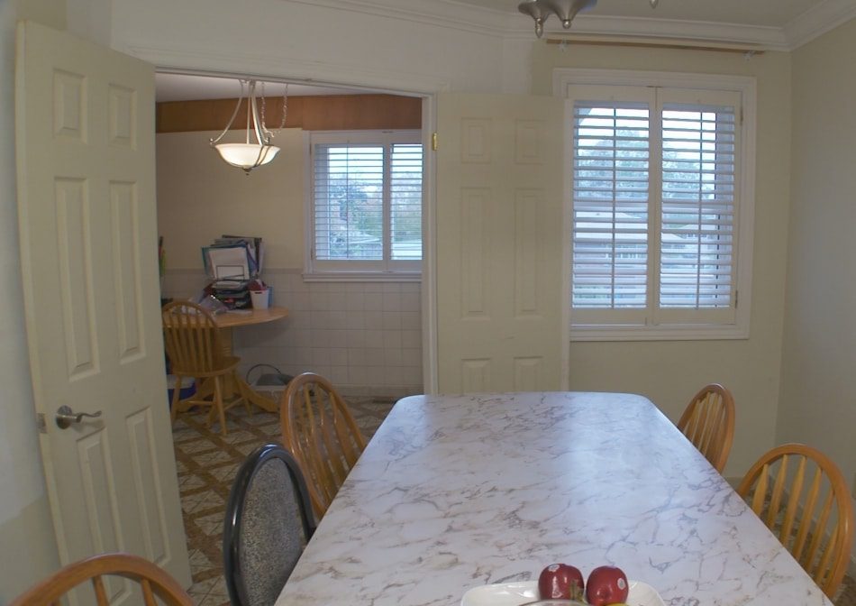 We knew buyers would freak out over this fully custom kitchen, now with double the storage and prep space. From the appliances to the protective flooring, everything here is highly functional—except for a faux panel at the bottom of these cabinets. That’s there to give the illusion of a full pantry, shhh.