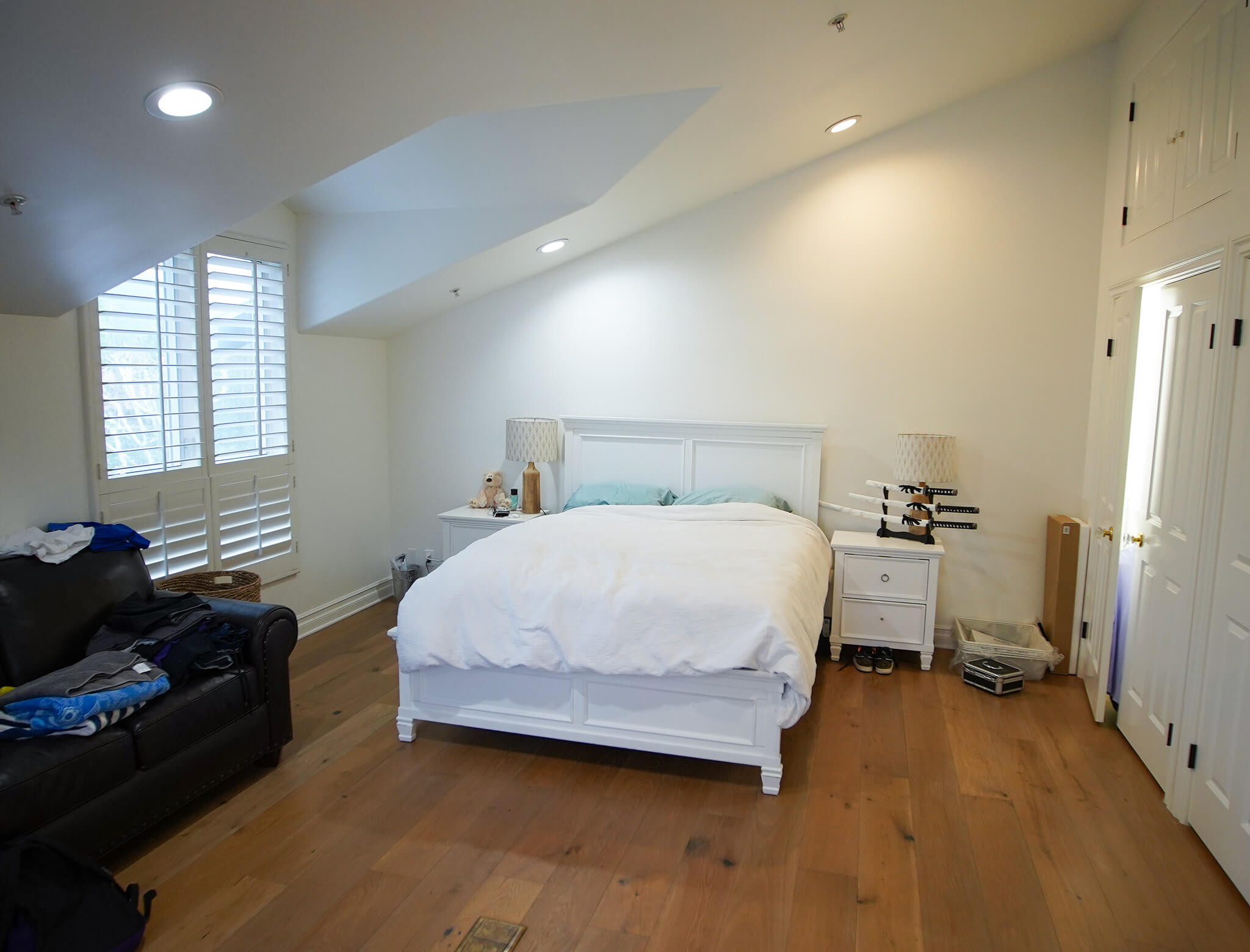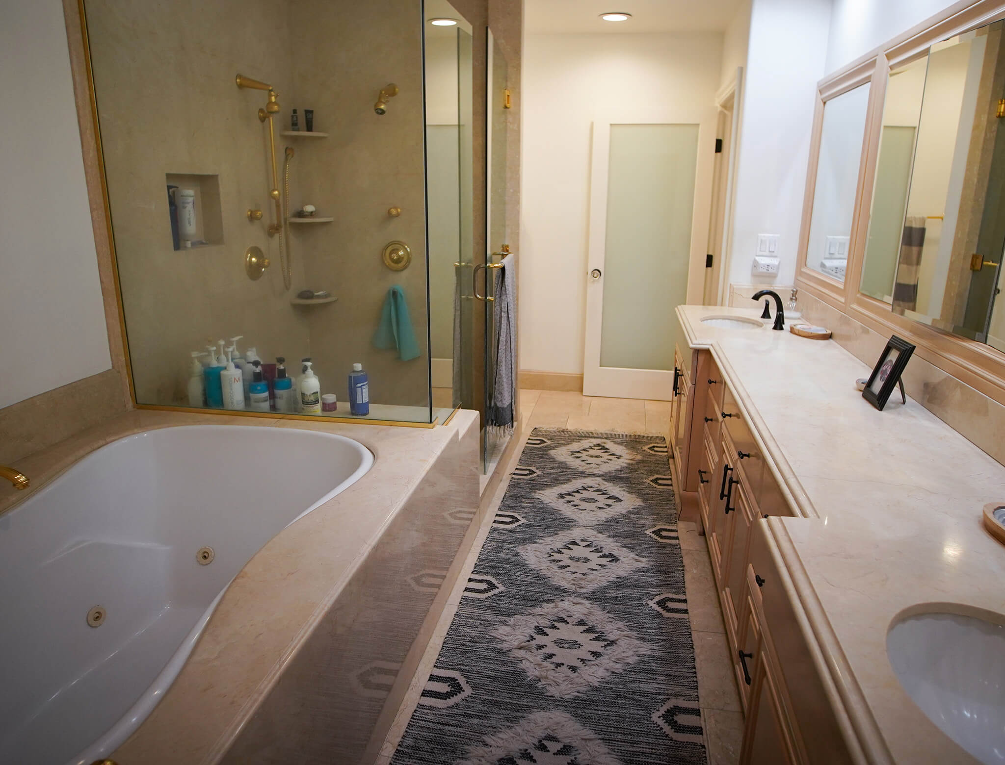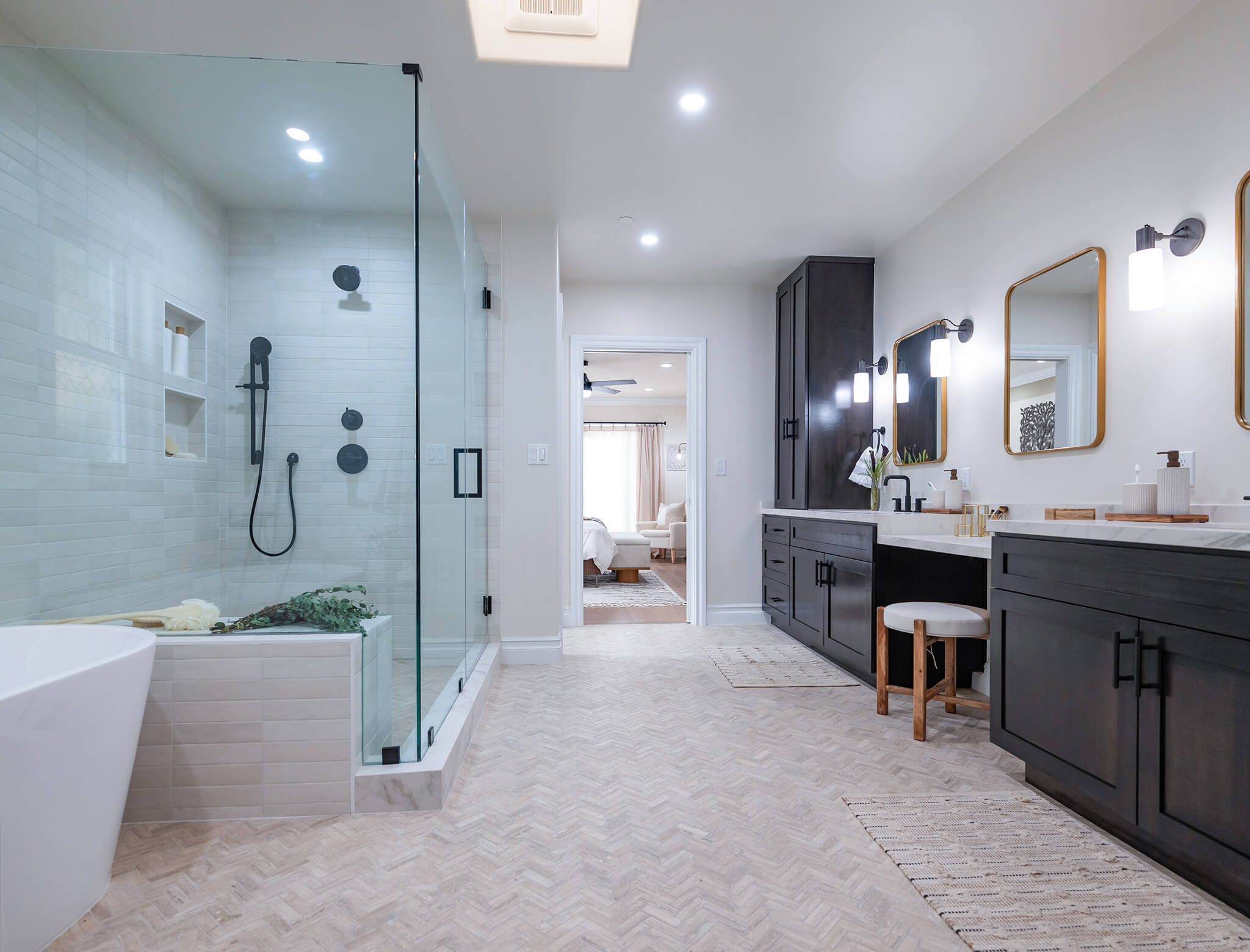 The bathroom was just not working for Stephanie and Mike. The galley-style en suite was cramped, outdated, and was just dysfunctional enough to make it more annoying than it was enjoyable. Drew and Jonathan were able to give the bath a spa-style upgrade with new finishes, a better layout, and a more modern look. They expanded the bathroom for better flow and function, and gave Stephanie and Mike an en suite they could actually relax in.