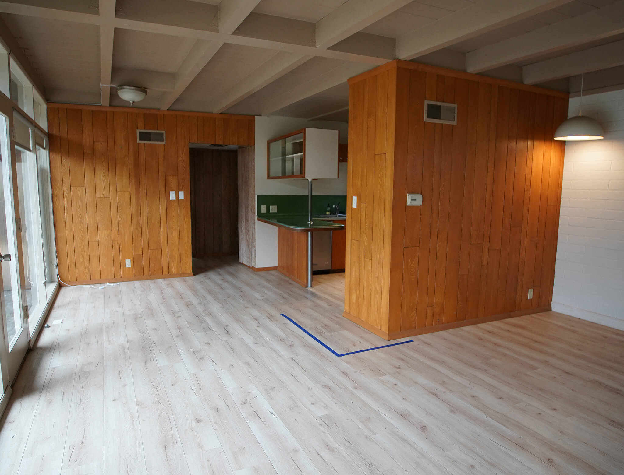 For Jess and Jeff, the functionality of the kitchen was more important than another row of windows, so the Bros closed off a section in order to build out even more storage. They included a useful writing desk for Jess, and plenty of cabinetry for the family to keep things organized.