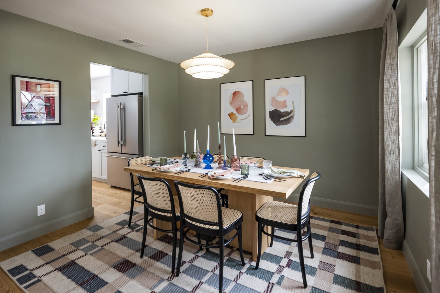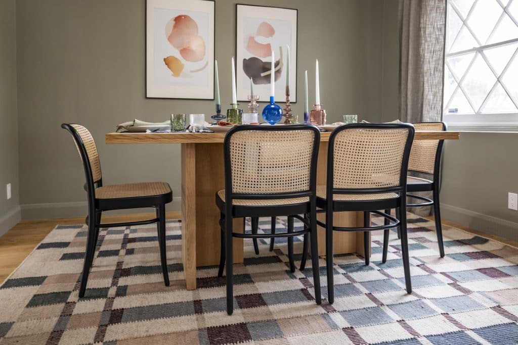 There’s nothing relaxing about dining in a red room filled with carpet. We repainted the walls an elegant green and installed beautiful hardwood flooring so that the family can gather comfortably.