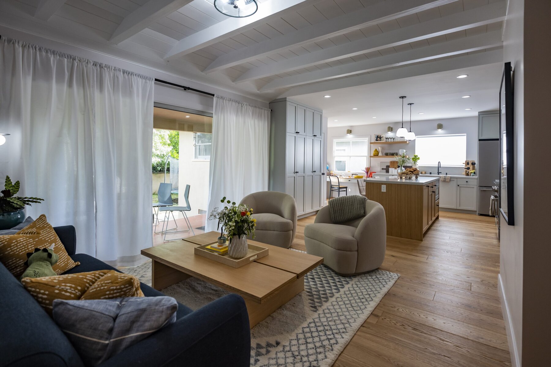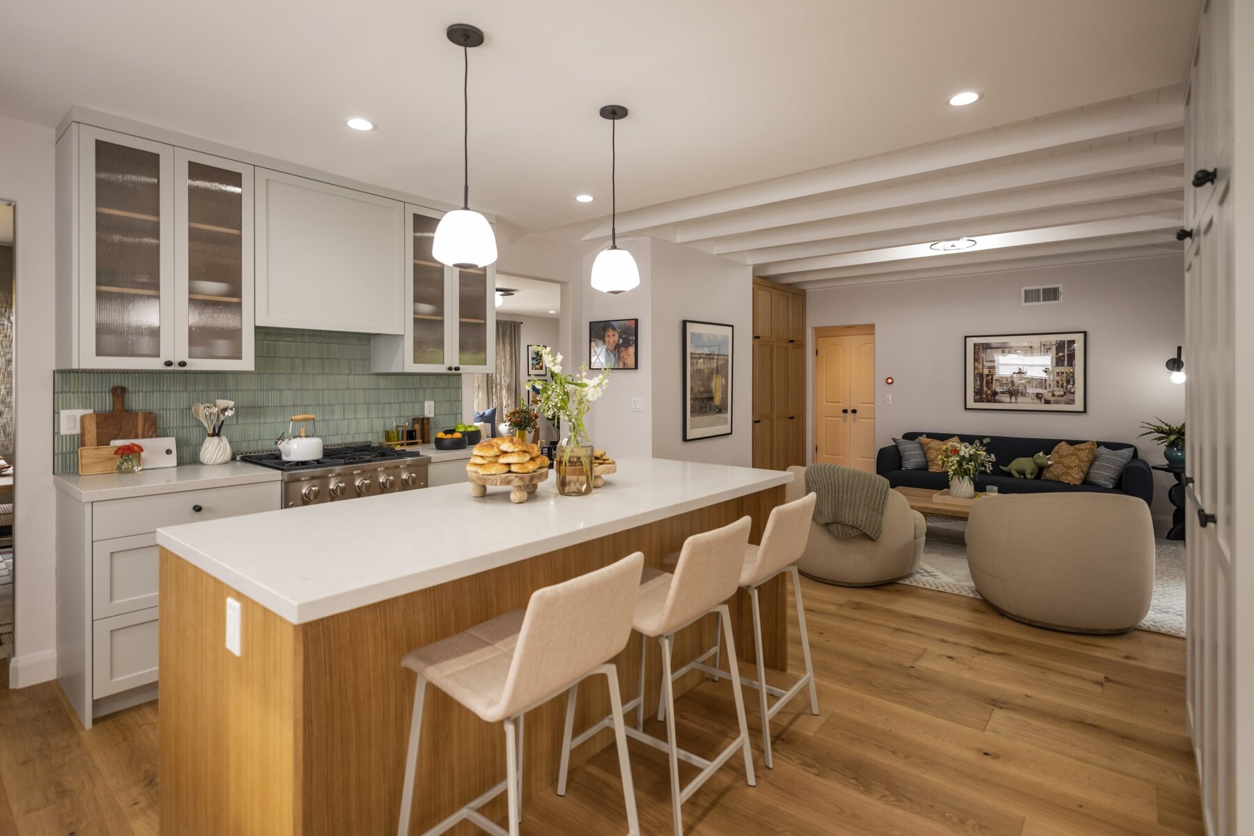 We gave the living room, dining room, family room, and kitchen a beautiful remodel, with special attention paid to their son’s love of crafts and creativity.