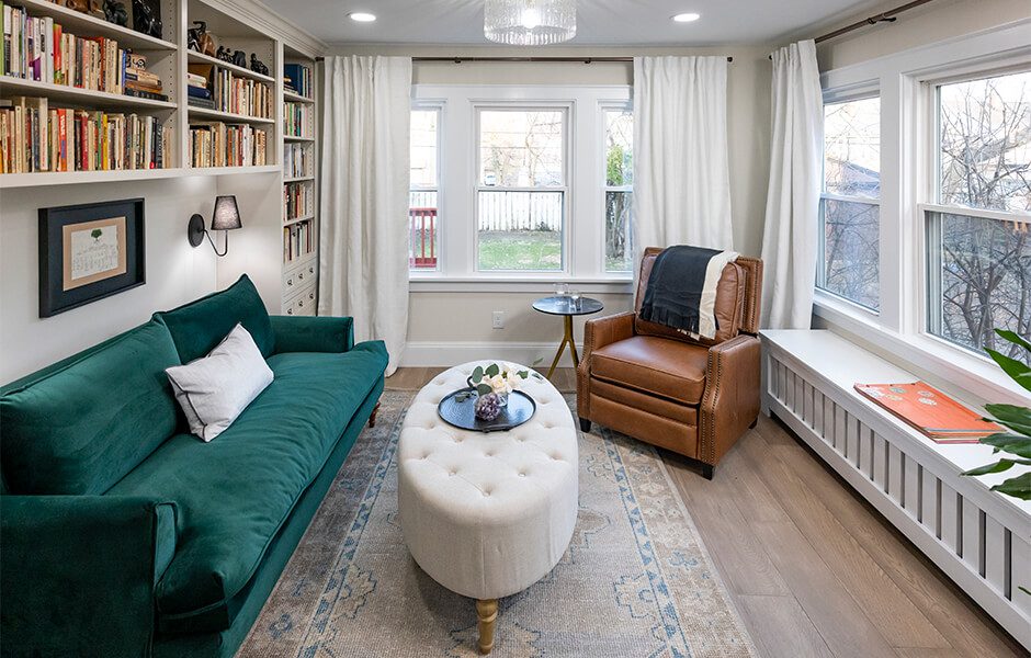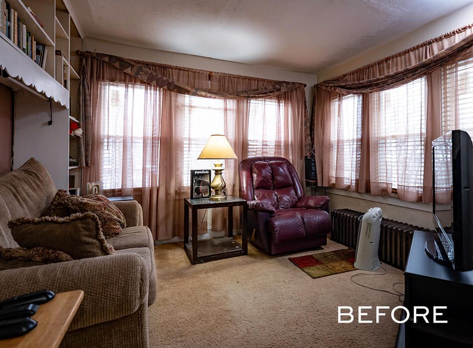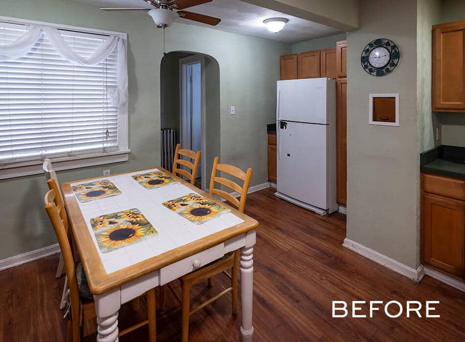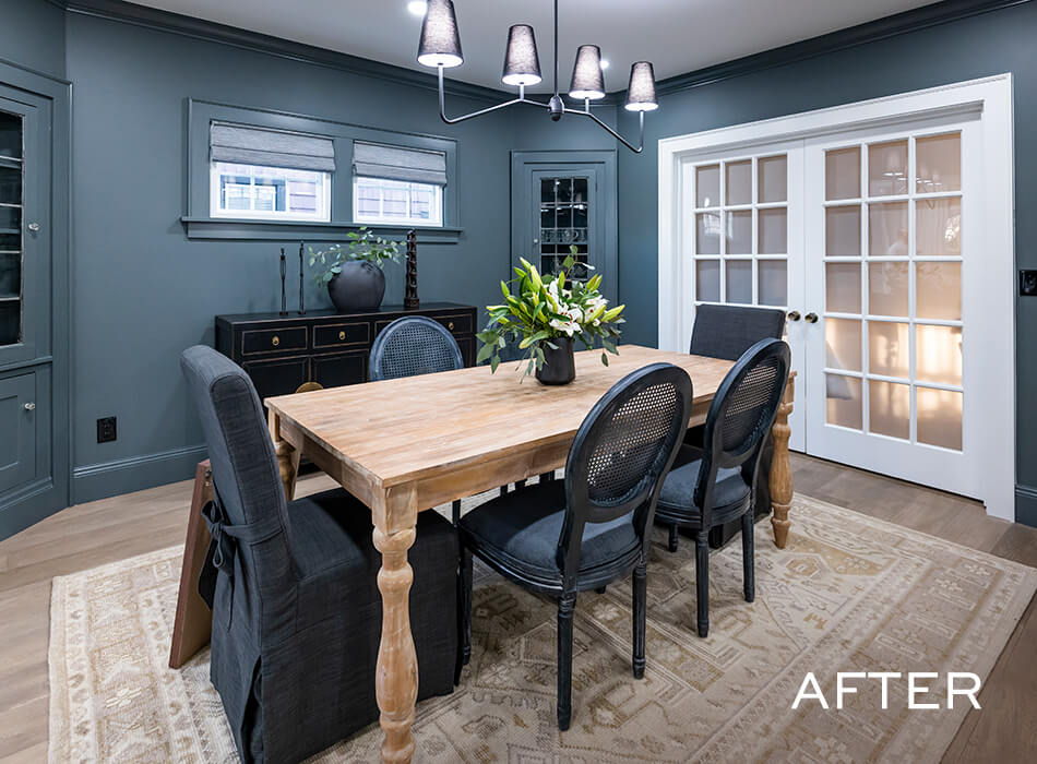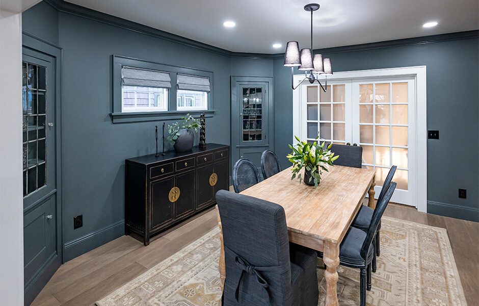 Years of kids running around had worn Yvonne’s old dining room carpet down to the bones. However, once we restored the original hardwood floor below, all it took was a fresh coat of paint and a chic dining set to breathe new life into the space.