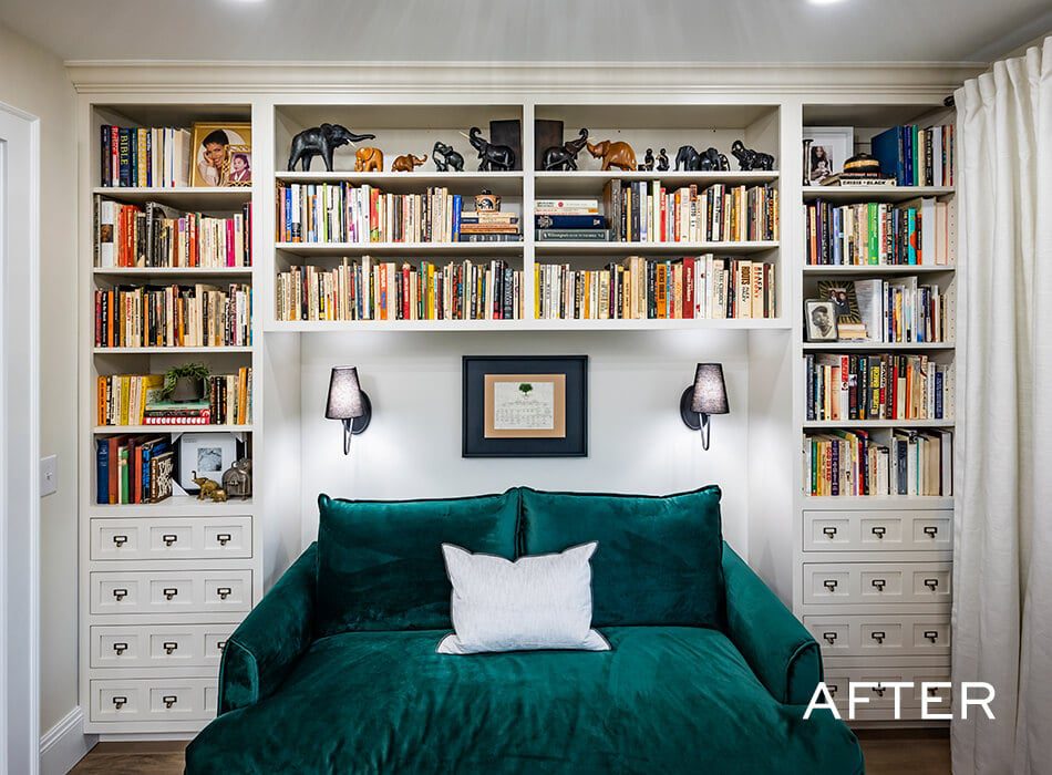 Some of Yvonne’s most cherished possessions are the letters she’s received from former students. So, when we revamped the study, we made sure that the new built-in shelves not only included plenty of space to display pictures of loved ones but also custom drawers to store the letters in.