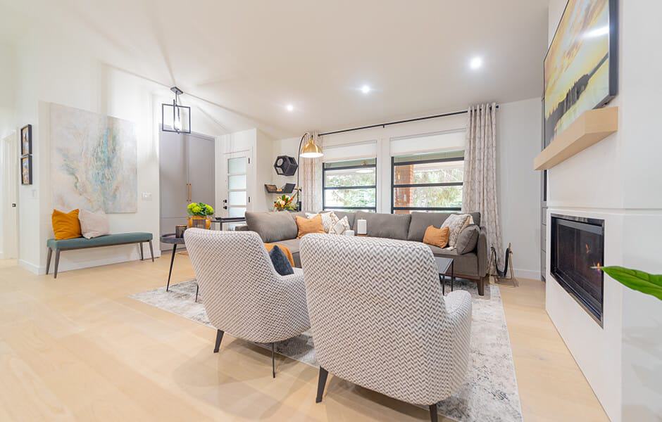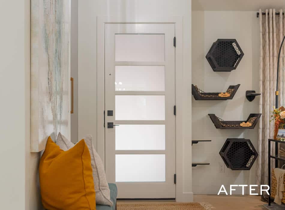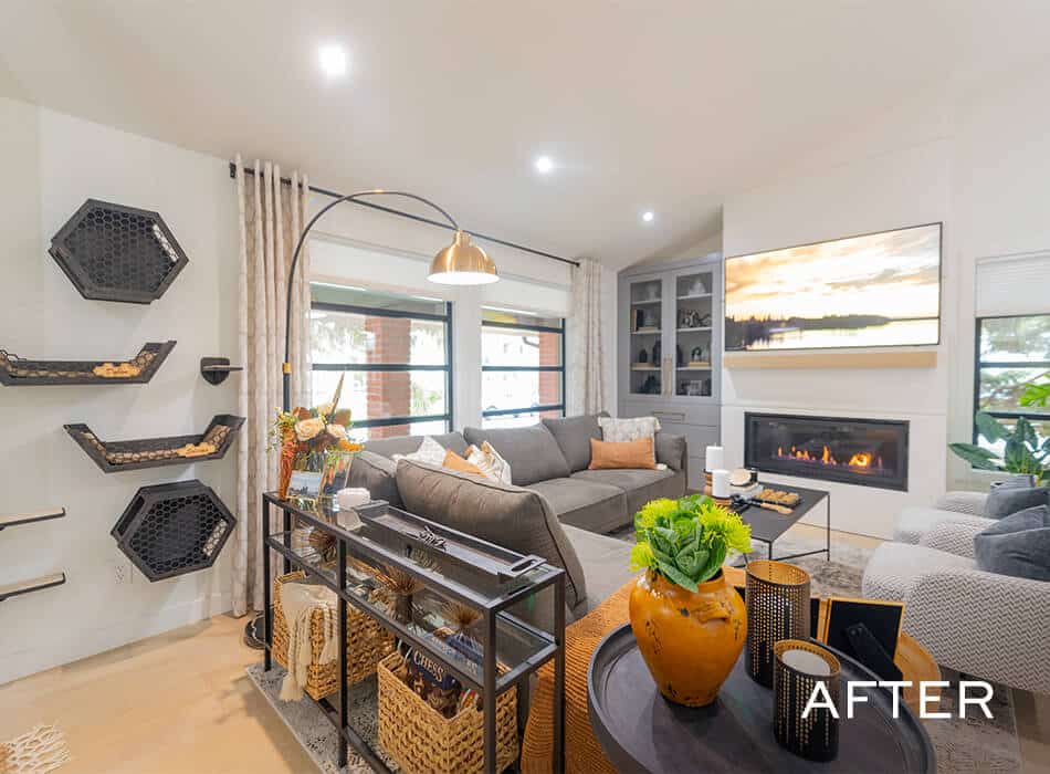 From the start, Jodi and Mel wanted their living room to look open and bright. So, on top of taking down the inside walls, we also decided to vault the ceilings to truly achieve a spacious feel. Add in the improved sightlines and cat-friendly furniture, and now it is the perfect hub for their entire family to gather around.