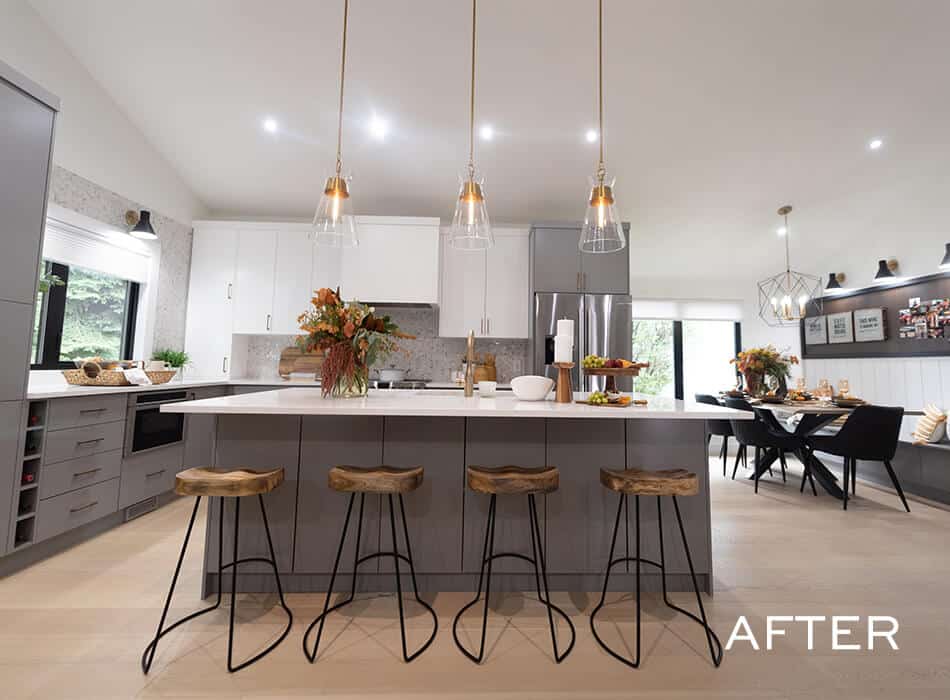 Jodi and Mel, our best friends from college, almost gave up on owning a home, until they followed an opportunity to Calgary and found a dream house with ample potential. The 70s-style house desperately needed an update, but it was in a desirable neighborhood and had solid bones, giving the couple a blank space to work with and make their own. We swooped in to help our best friends and completely transform the entire main floor to give Jodi and Mel the gorgeous, spacious home the couple had always dreamed of.