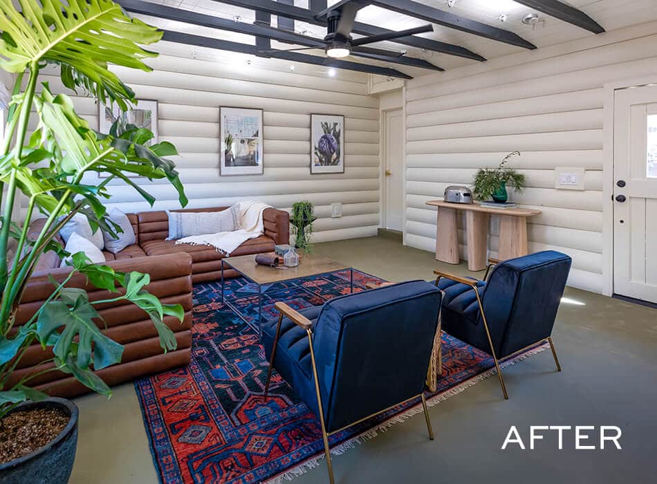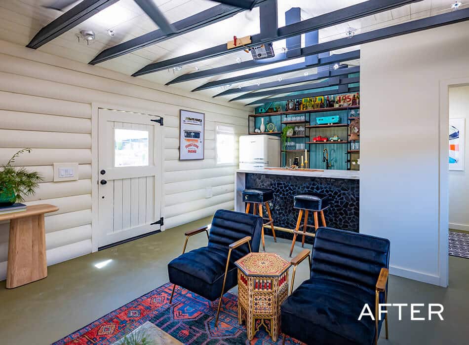 Actor, comedian, screenwriter, musician, and producer John C. Reilly gave his driver and close friend of many years, Johnny, a very special renovation. Johnny and his wife are long-time foster parents. Working alongside us, John helped overhaul a log-style cabin in Johnny’s backyard into a stunning new space and completely refreshed his large backyard.