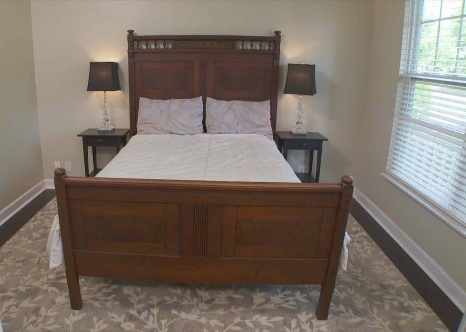 Removing the kitchen’s clunky pantry allowed us to install twice the amount of cabinets, all in a bold navy hue. (It’s actually very similar to the shade Drew used in the den of his and Linda’s Honeymoon House!) Rounding out the room are quartz surfaces, a marble tile backsplash, and brushed gold hardware. You’ve heard us say this before, for sure: A showstopping kitchen will sell any home, especially when it looks like it belongs in a magazine.