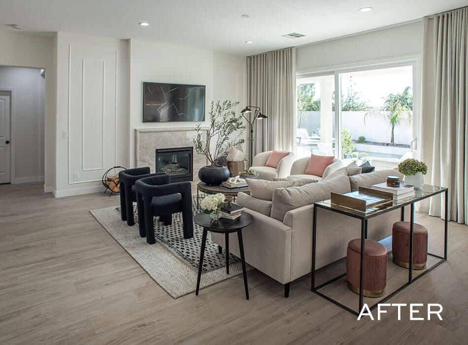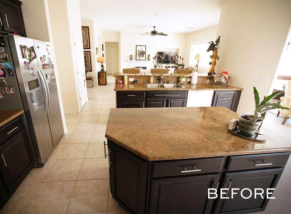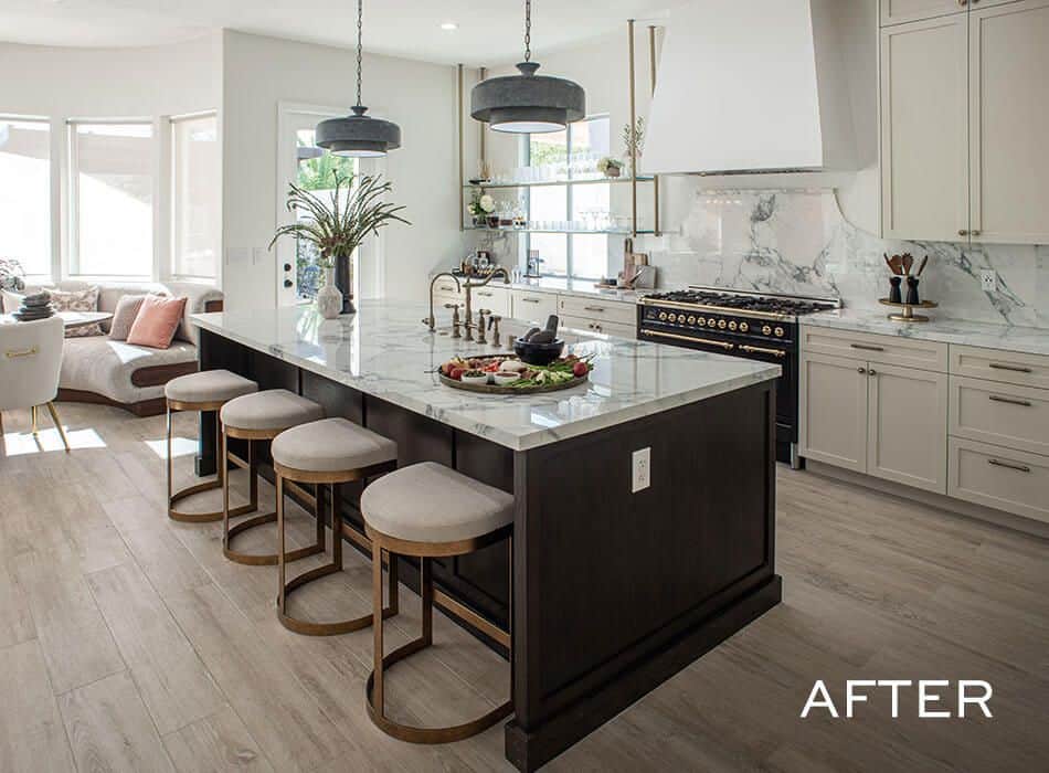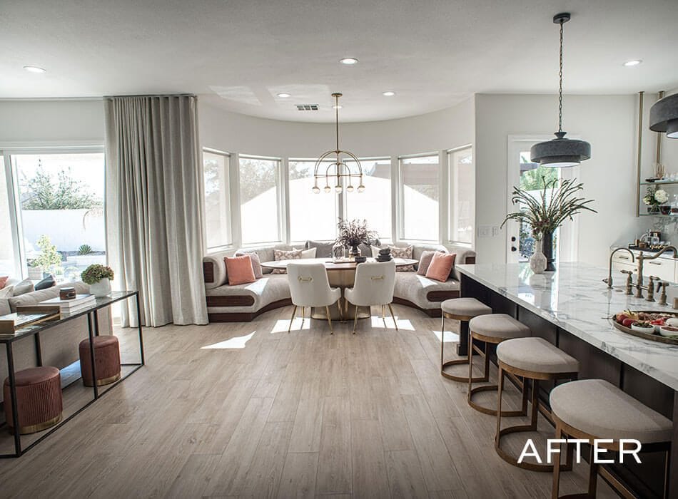 Lisa and Jay recently moved from Dallas to the Las Vegas suburbs to be closer to Lisa’s sister and her family. They love the backyard, and the house has great bones, but they needed us to turn the kitchen, living room and dining room into the hosting and entertaining epicenter of their dreams.