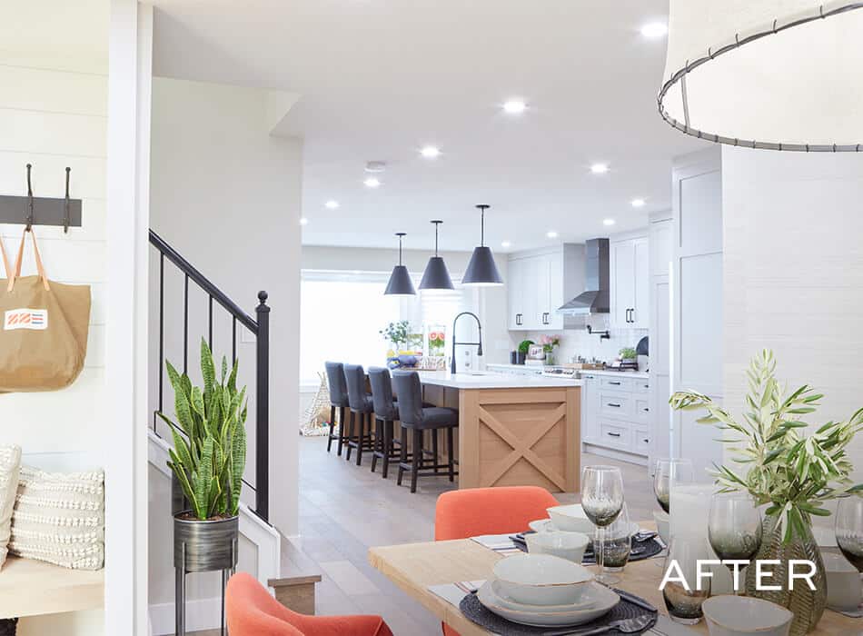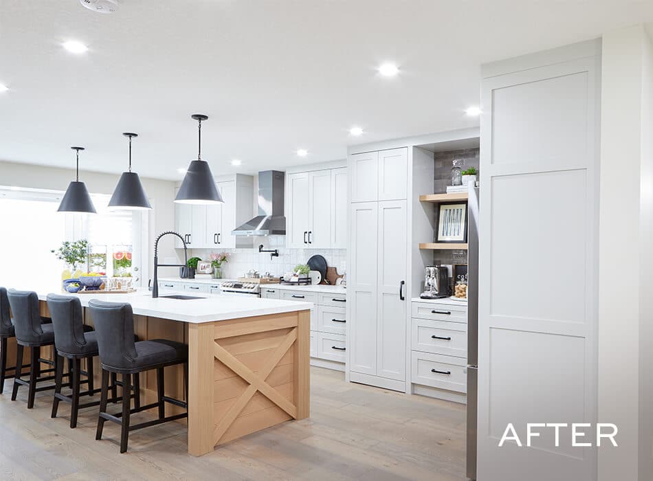 Lisa and John are the type of folks who are always ready for a good party. For years, their house has been the center of numerous family and neighborhood gatherings. But as their children have grown, it is clear there’s not enough space for four adults to try and host a get-together at the same time. We came in and converted their home’s awkward layout into a rustic, open-concept farmhouse where they can entertain folks for years to come.