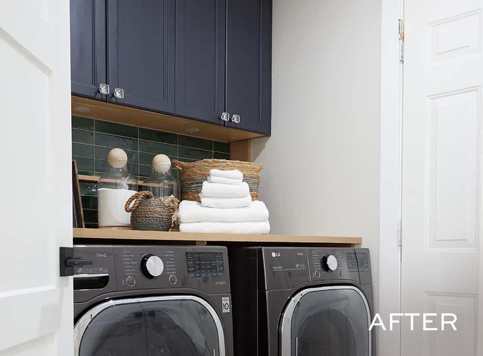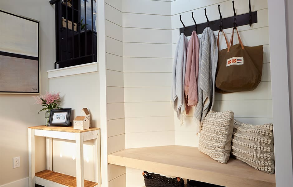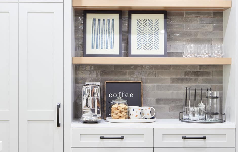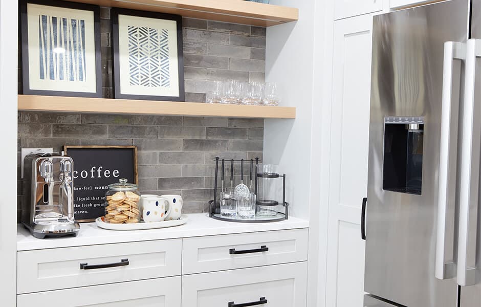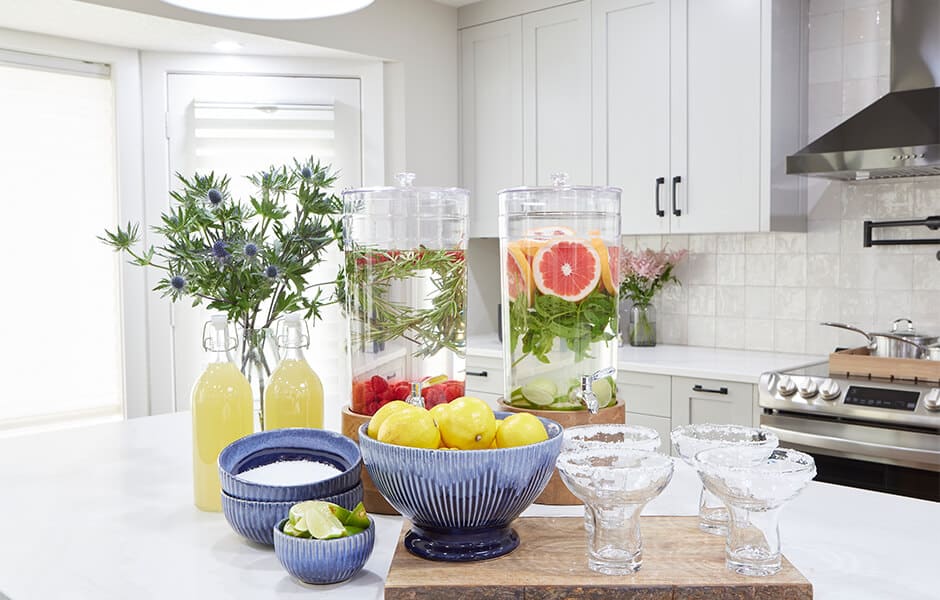 Taking down the former dining room’s wall and expanding the kitchen was John and Lisa’s number one goal. The added space gave us room to not only extend the counter and cabinets but also install a massive new island, giving the family plenty of room to prepare drinks and cook together. Best of all, their hidden pantry includes a wine cork box made by Cora herself.