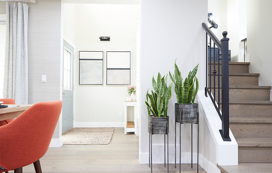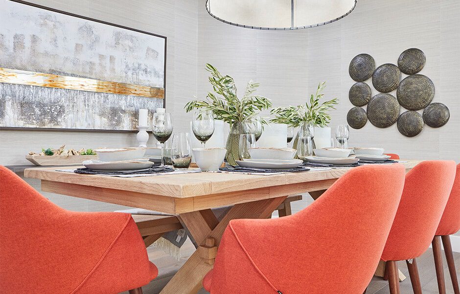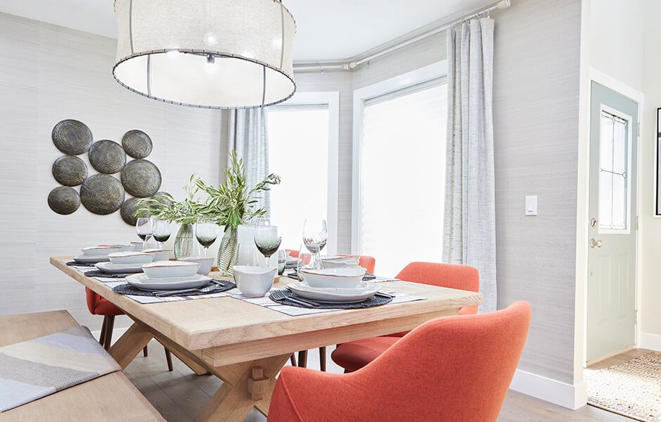 From the kid’s playroom to their dog’s space, the room at the front of their house has gone through a variety of different phases. We decided to turn it into a fun, modern dining room so that guests can appreciate the great view. With its newly installed hardware floors, the room serves as an inviting centerpiece that ties together the now open space.
