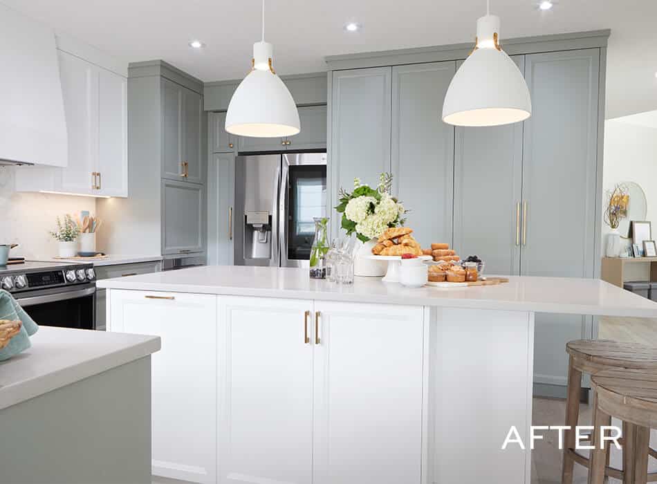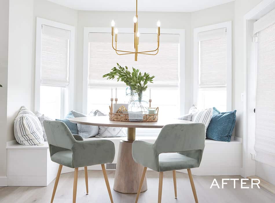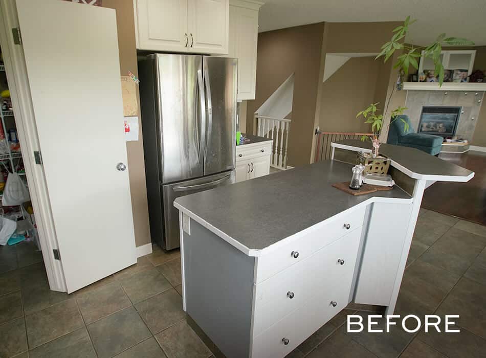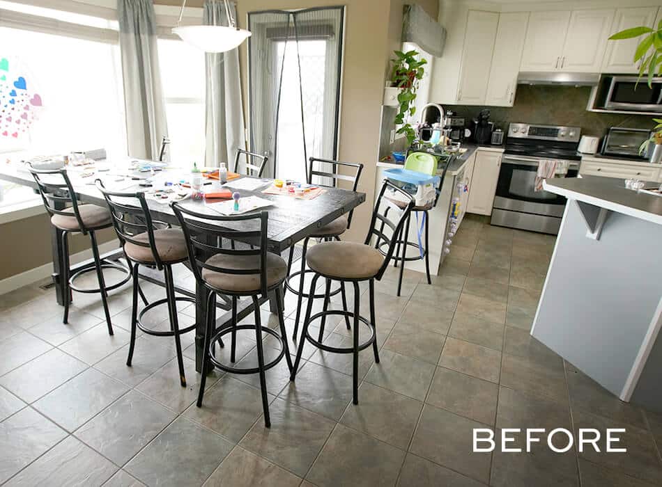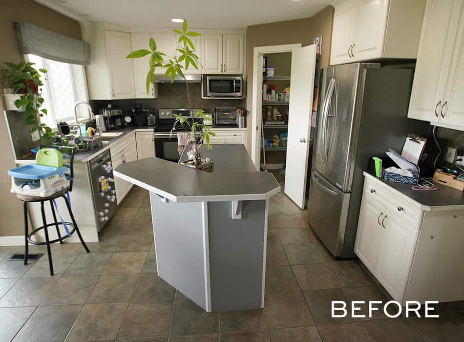 From the explosion of crafts across the dining table to the uneven island that was a walking hazard for their kids, Sean and Lisa were so strapped for space, they resigned themselves to eating on the floor some nights. To help get them back on their feet, we installed a built-in bench at their bay window and a new level island.