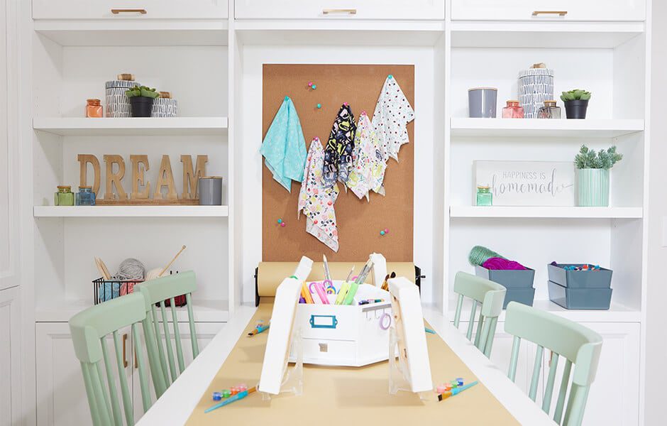With the dining table now off limits, we set our sights on making the craft room a place Lisa and the kids would never want to leave. From the kid-friendly décor to the ample storage space, now Sean doesn’t have to worry about glitter getting all over the house.
