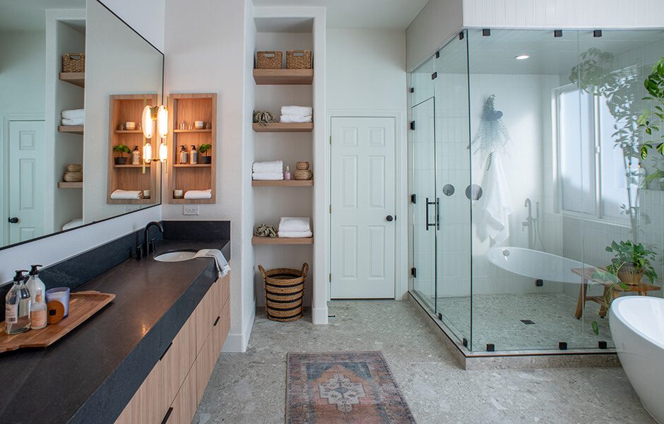 Marcie gives so much for others that we wanted to give something back to her: namely, a bathroom sanctuary complete with steam shower and soaking tub. Now, after a day of providing for her community, she can retire to this retreat for renewal and rest.