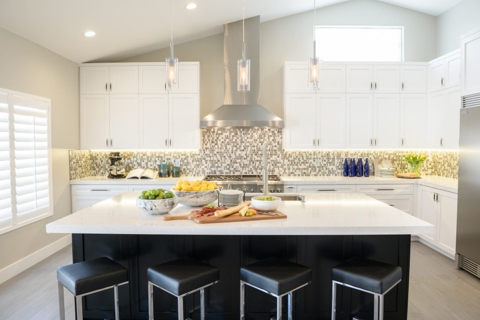 After taking a chance on love, Las Vegas newlyweds Mindy and Paul went all-in on a search for the home where they could build their new life together. Over 150 houses later, they found the one in the right location with the potential to create the perfect space for entertaining. We took care of the oversized entryway, Roman style columns, and relocated the kitchen to make way for an open-concept flow complete with a large dining space, bar, and a nook built for game night. In the end, even though they traded a honeymoon island for a kitchen island, Mindy got the gourmet kitchen of her dreams.