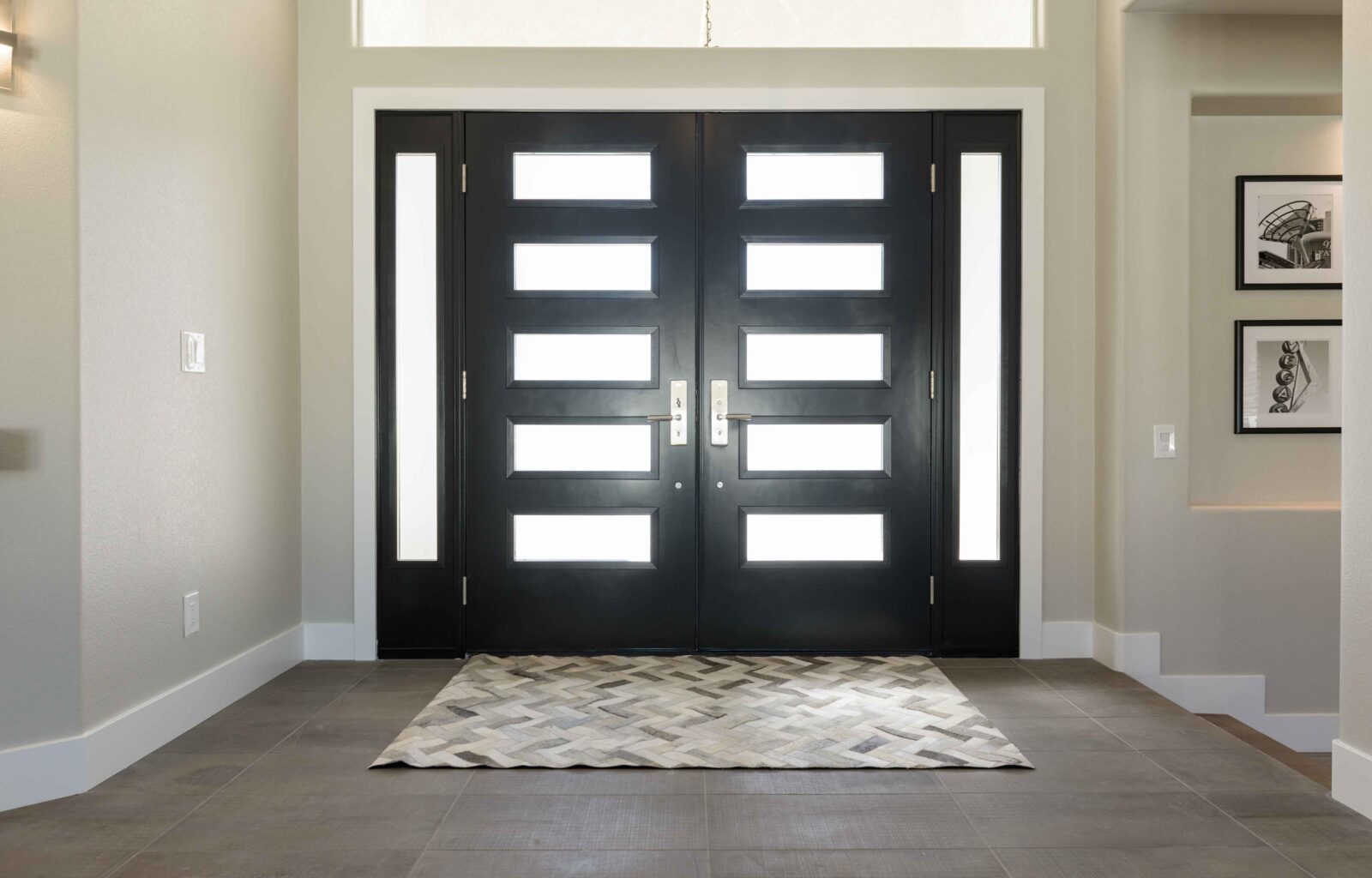 Mindy and Paul’s original entryway was wasted space, with a big landing and gaudy columns taking up valuable real estate. We wanted the area to feel more open and elevated, so we got rid of the columns and used contrasting flooring, new doors, and light fixtures to create an interesting setup without taking up floor space. Finally, we cut back the raised floor to create a straight step down into the living area—now this is a grand entrance!
