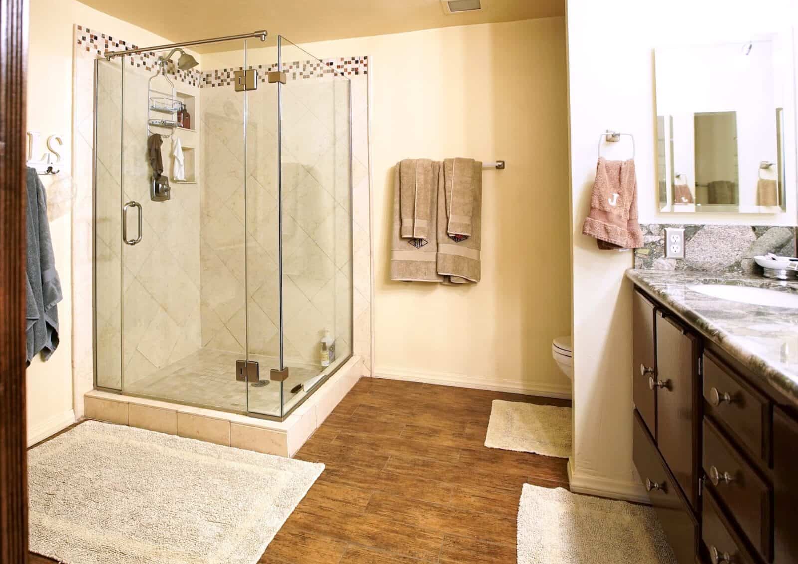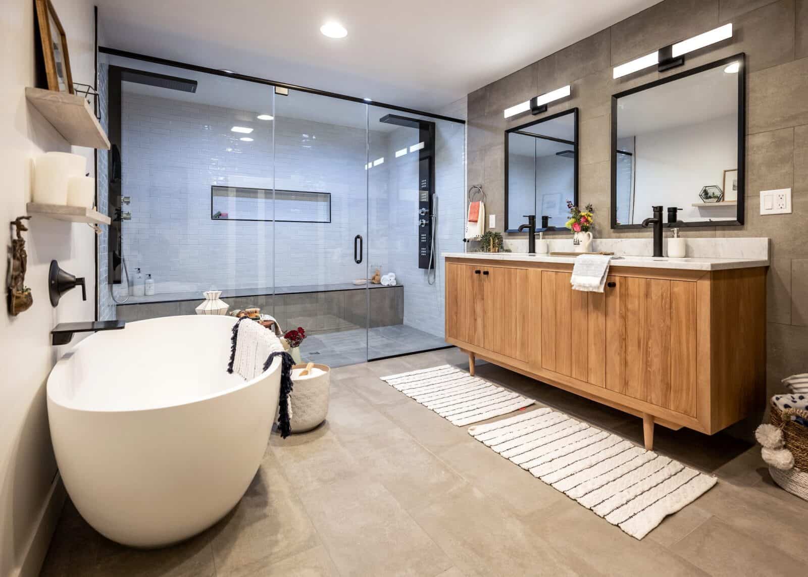 Not every home needs a sauna, of course, but Ren and Scott are all about healthy living and really wanted to incorporate one into their master bath. We found an option that fit the space size-wise and then customized the color so it blends in and doesn’t overpower the other amazing new features, like the double walk-in shower, freestanding tub, and double vanity. Have you seen a more zen bathroom?!