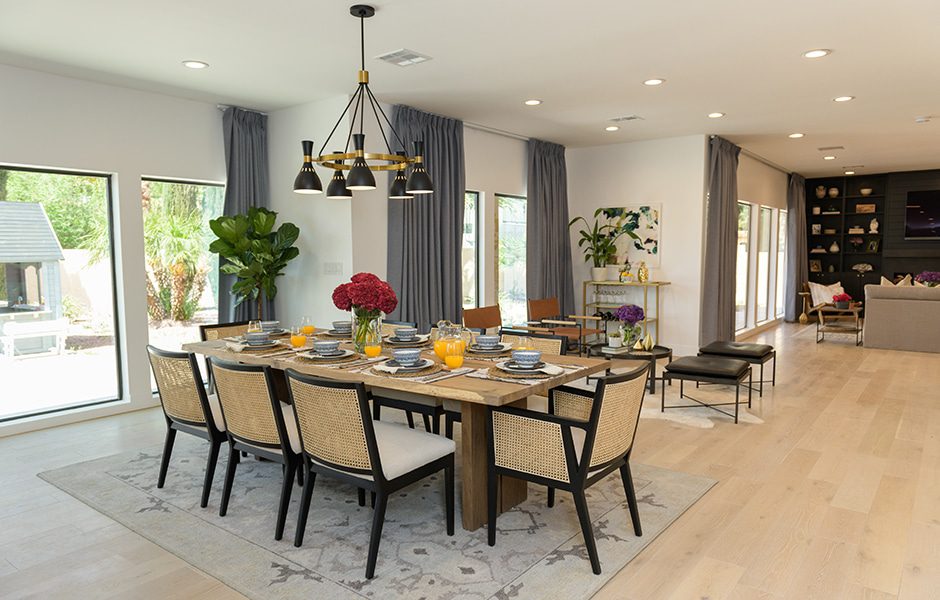 During the aforementioned island discussion, Shaly and Leonel explained to us that while a dining room table was necessary, they didn’t expect to use it—they claimed they’d never eat there, just at the island. But when the couple set eyes on this dining set, they both started walking back their earlier statements. The cane chairs with black finish stand out against the neutral rug, and the table offers stellar backyard views so Mom and Dad can enjoy their morning coffee or a lingering dinner and still keep an eye on the kids as they play outside.