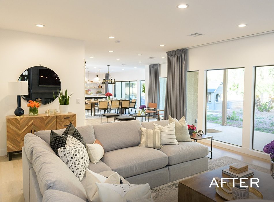 Shaly and Leonel moved to Las Vegas ten years ago to open their own insurance agency but were never quite convinced they’d be there forever. Two kids, three business offices, and multiple rentals later, they’re finally ready to admit they’re sticking around and are eager to put down roots. After years of living in boring, beige apartments, the Miami natives were ready to find their dream home—something unique that reflects their personalities, and with a lot of green space for their young children (and to remind them of the lush landscapes of Florida). Additionally, they wanted a single story with open site lines, as well as a dedicated office area since the couple often works from home. Finding a house within their budget was a challenge, but we found a place that, after a lot of demolition work, fit the bill perfectly.