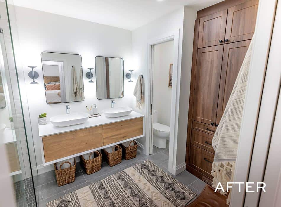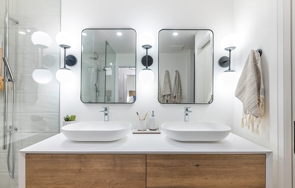 Waylon and Adam had never really had their own bathroom before, so we needed to make this one extra-relaxing. We installed dual shower heads and his-and-his sinks to give them each their own space, while making the ensuite big enough overall so they wouldn’t be bumping into each other.